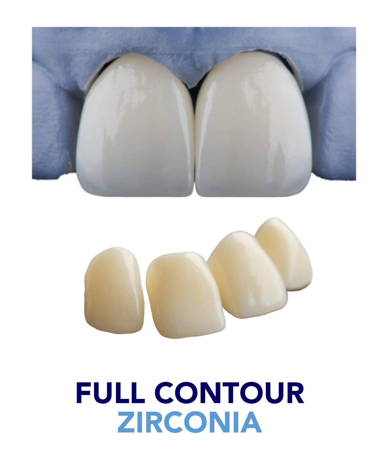 Full contour zirconia crowns and bridges offer the balance of strength and esthetics needed for challenging cases. Fabricated from premium zirconium dioxide, these restorations withstand functional stress while maintaining a natural appearance.